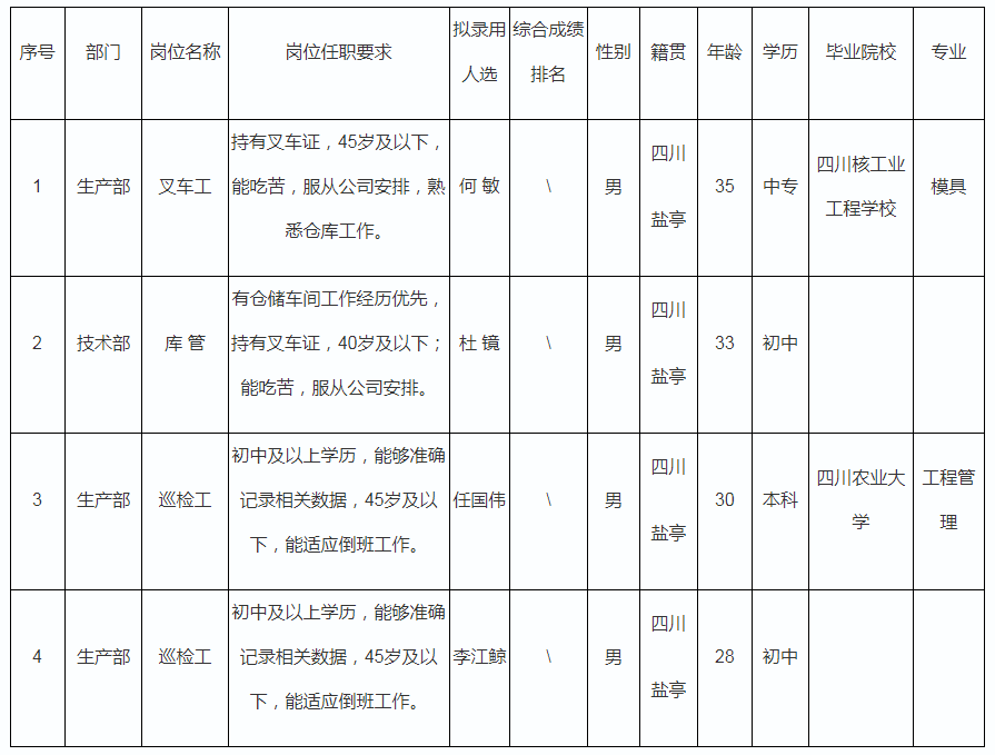 根據(jù)格潤中天發(fā)布的招聘公告及招聘相關(guān)規(guī)定,經(jīng)筆試、面試、考察、體檢等程序,擬錄用何敏等同志到格潤中天工作,現(xiàn)予以公示,具體情況如下: