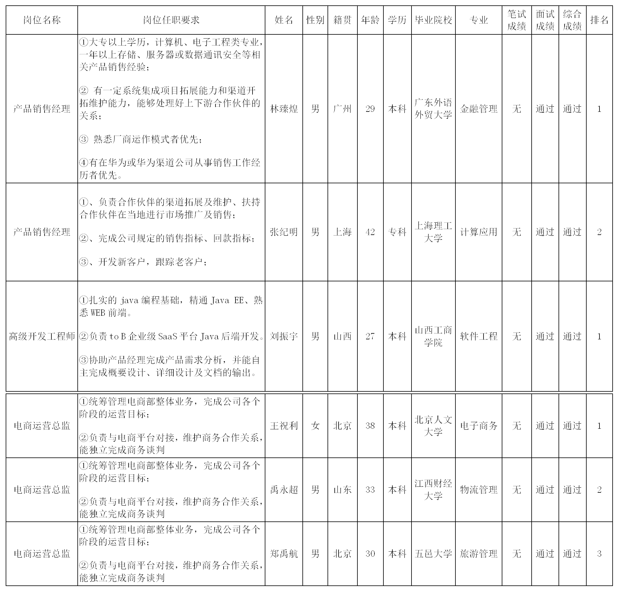 根據(jù)四川長虹佳華信息產(chǎn)品有限責(zé)任公司發(fā)布的招聘公告及招聘相關(guān)規(guī)定,經(jīng)筆試、面試等程序,現(xiàn)將筆試(面試)成績予以公示。
