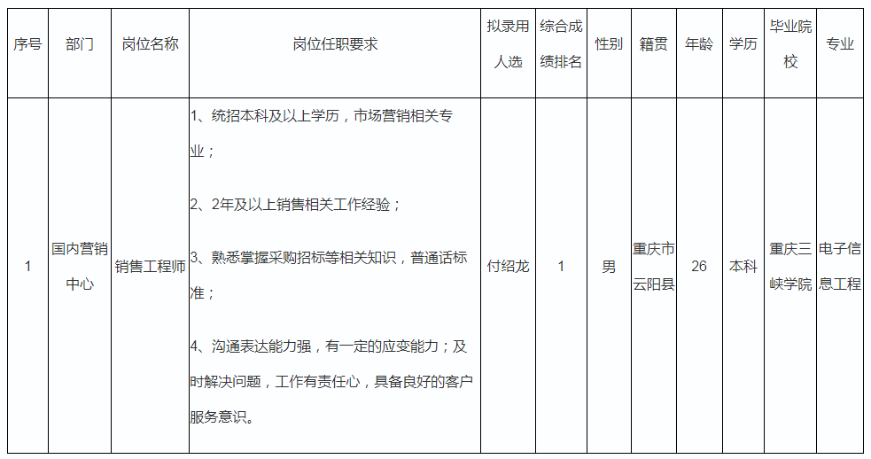 根據(jù)中科美菱低溫科技股份有限公司(以下簡(jiǎn)稱(chēng)“中科美菱”)發(fā)布的招聘公告及招聘相關(guān)規(guī)定,經(jīng)面試、考察、體檢等程序,擬錄用付紹龍同志到中科美菱工作,現(xiàn)予以公示,具體情況如下: