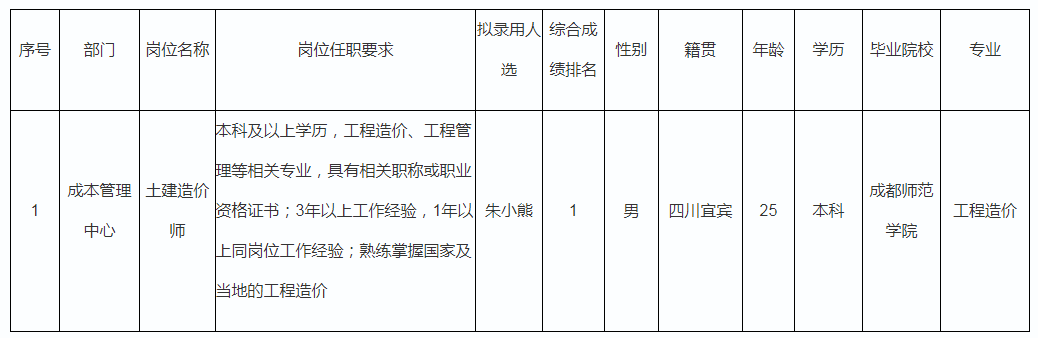 根據(jù)九洲千城置業(yè)有限責(zé)任公司發(fā)布的招聘公告及招聘相關(guān)規(guī)定,經(jīng)筆試、面試、考察、體檢等程序,擬錄用朱小熊同志到九洲千城置業(yè)有限責(zé)任公司工作,現(xiàn)予以公示,具體情況如下: