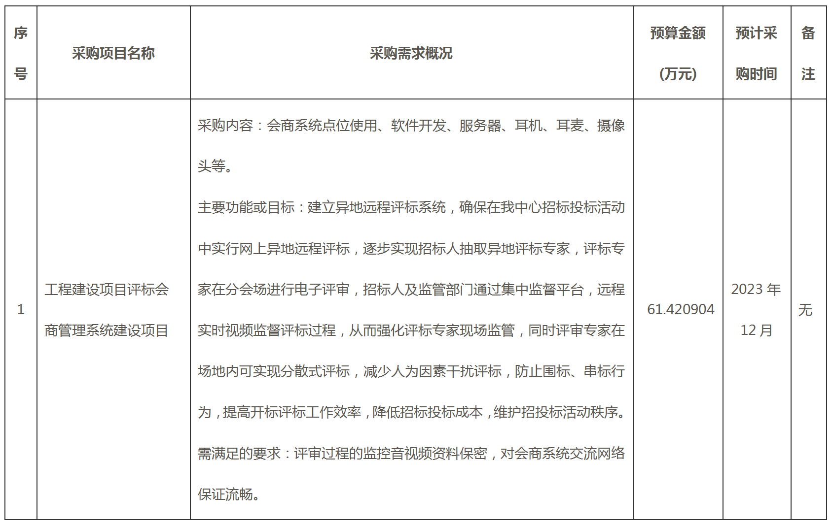 為便于供應(yīng)商及時(shí)了解政府采購(gòu)信息,根據(jù)《四川省財(cái)政廳關(guān)于開展政府采購(gòu)意向公開工作的通知》(川財(cái)采〔2021〕153號(hào))要求,現(xiàn)將綿陽(yáng)市公共資源交易服務(wù)中心2023年度(第1批)采購(gòu)意向公開如下: