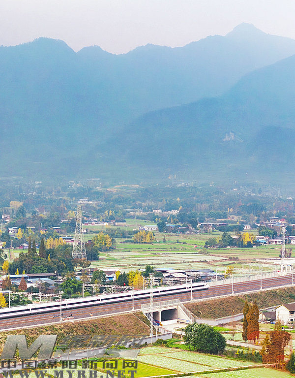 試跑動(dòng)車組行駛在安州區(qū)境內(nèi)。(四川日?qǐng)?bào)全媒體記者 何海洋 攝)
