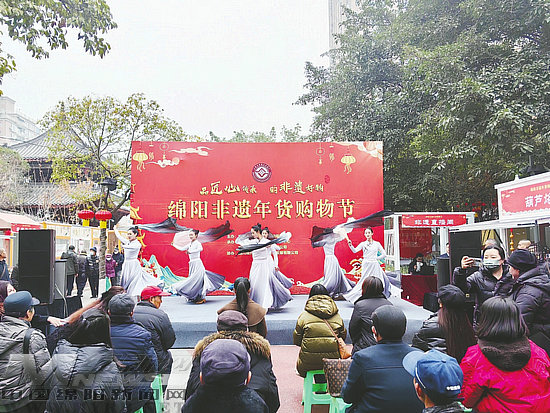 綿陽(yáng)非遺年貨購(gòu)物節(jié)啟動(dòng),來(lái)自涪江流域各地特色非遺產(chǎn)品以舞臺(tái)展演、非遺展銷、技藝展示等形式,在鐵牛廣場(chǎng)等你——