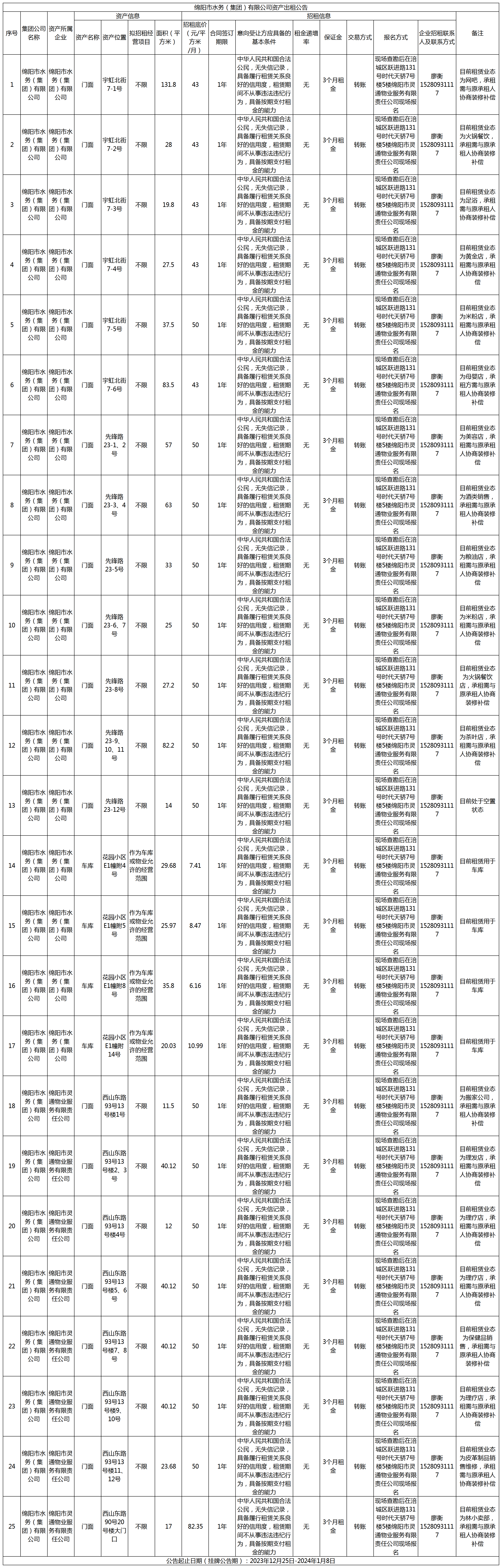 綿陽市水務(wù)(集團(tuán))有限公司資產(chǎn)出租公告
