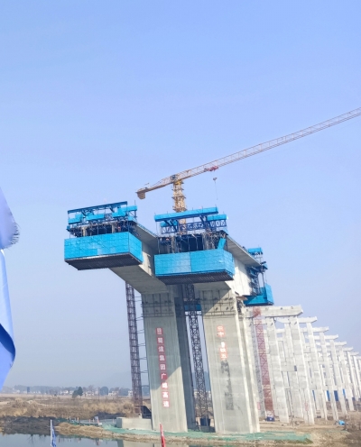 2月1日,在位于梓潼縣許州鎮(zhèn)的G5京昆高速擴(kuò)容工程廣綿段潼江河特大橋施工現(xiàn)場(chǎng),記者看見,潼江河特大橋兩個(gè)主跨橋墩上,施工人員正在各自的崗位上有條不紊地忙碌。站在大橋主墩下遠(yuǎn)望,一條蜿蜒的“巨龍”橫跨潼江河,伸向天際;仰望,巨大的塔吊緩緩移動(dòng)。