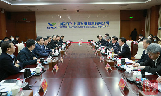 綿陽新聞網(wǎng)上海專電 2月10日,四川省委常委、綿陽市委書記曹立軍帶隊赴中國商用飛機有限責任公司考察,開展項目對接和投資促進活動,并與中國商飛公司黨委書記、董事長賀東風,黨委副書記、總經(jīng)理趙越讓座談交流。