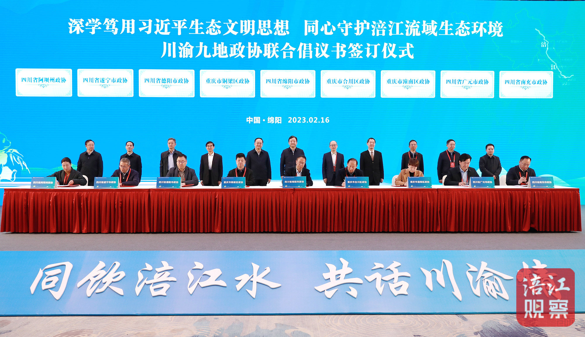 會(huì)前,與會(huì)嘉賓前往三江湖國(guó)家濕地公園、仙海水利風(fēng)景區(qū)、綿陽城市規(guī)劃展覽館等地參觀考察。會(huì)上,綿陽市副市長(zhǎng)袁明,四川省生態(tài)環(huán)境廳黨組副書記、副廳長(zhǎng)李岳東,重慶市生態(tài)環(huán)境局副局長(zhǎng)向霆作交流發(fā)言;重慶市合川區(qū)、銅梁區(qū)、潼南區(qū),四川省綿陽市、德陽市、廣元市、遂寧市、南充市、阿壩州政協(xié)相關(guān)負(fù)責(zé)同志共同簽訂《深學(xué)篤用習(xí)近平生態(tài)文明思想同心守護(hù)涪江流域生態(tài)環(huán)境聯(lián)合倡議書》。
