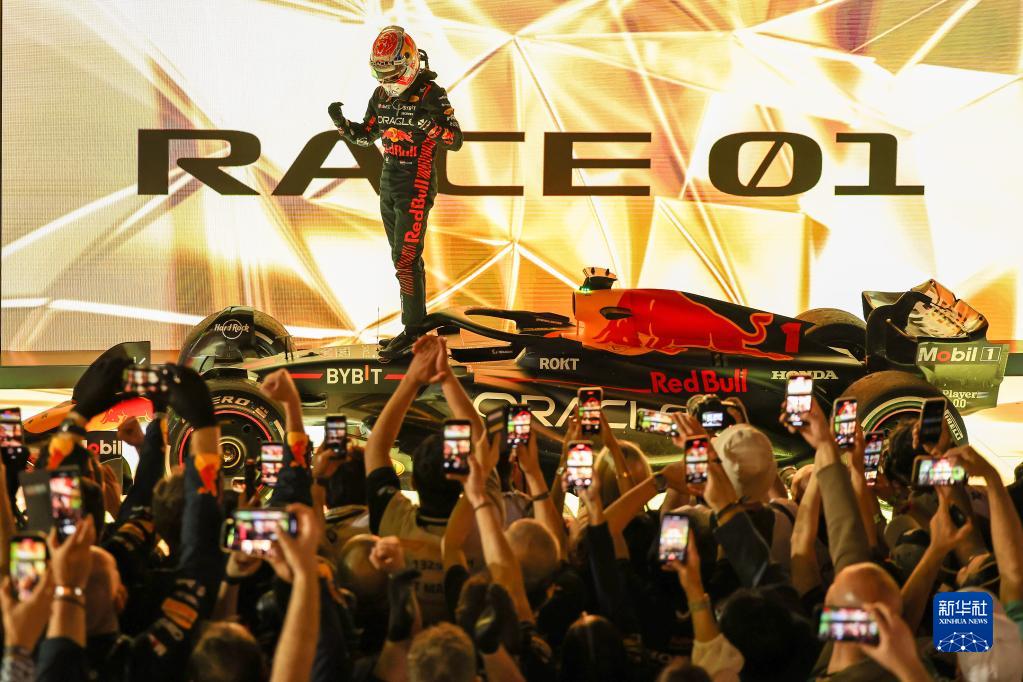 3月5日,紅牛車隊(duì)荷蘭車手維斯塔潘慶祝奪冠。新華社發(fā)(錢俊攝)