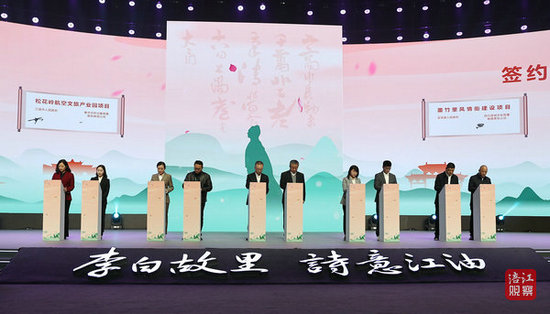 開幕式前,曹立軍、胡云、吉狄馬加、李云等與會領(lǐng)導(dǎo)參觀了綿陽市文旅資源和項目展、涪江流域精品非遺主題展。開幕式上,發(fā)布了李白重要游蹤地文化旅游聯(lián)盟2023宣言、音樂劇主題曲《將進(jìn)酒》、數(shù)字人“李白”、招商項目清單,舉行了重點文旅項目簽約儀式。