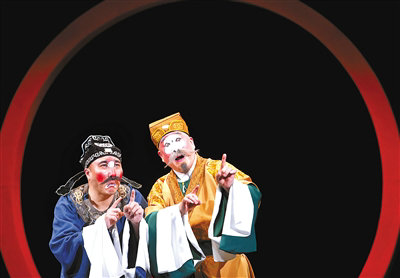 導演王紹軍從創(chuàng)排之初便給了這出戲“以歌舞演故事”的定位,于是全劇在“歌舞”上下足了功夫:借鑒了韓國經(jīng)典音樂劇《亂打》的“廚師舞”,貢老爺與貢少爺討價還價的“算盤舞”,將金錢擬人化之后貢老爺與“金錢人”的“雙人舞”——雖然看起來不那么京劇,甚至有些無厘頭,但卻突破了傳統(tǒng)程式,豐富了京劇舞臺的表達方式。在王紹軍看來,這出戲是為京劇“走出去”的一種嘗試,“中國戲曲要從‘走出去’逐漸向‘走進去’過渡,以往我們走出國門的大多是中國傳統(tǒng)經(jīng)典劇目。未來,我們也可以嘗試用戲曲排演西方經(jīng)典的方式與國外觀眾進行不同層面的交流。這樣的劇目對于國外觀眾而言可以不再分神、費解于劇情,而專注于中國戲曲的藝術表達。”