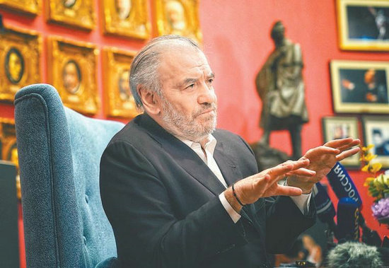 俄羅斯指揮家捷杰耶夫走進(jìn)國(guó)家大劇院大師俱樂(lè)部,接受采訪。