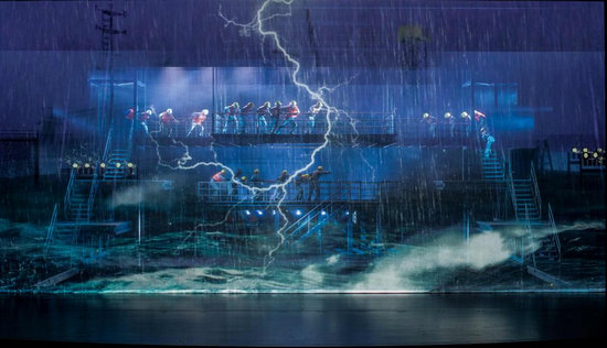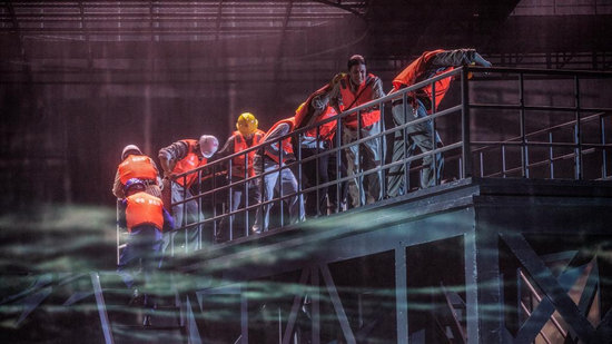作為一部工業(yè)題材話劇,《龍騰伶仃洋》選取了人工島上的臺風搶險、工程船上的困苦煎熬、籌建團隊“十三太保”的堅守、沉管安裝的一波三折、大橋海底隧道的接合等港珠澳大橋建設中的典型事件和情節(jié)。