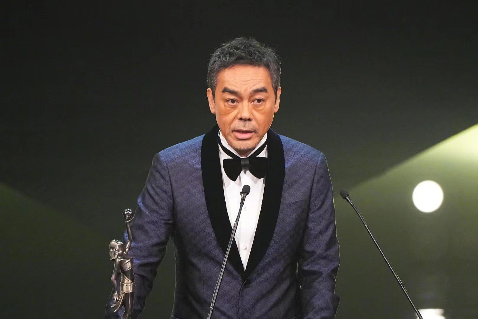 劉青云憑借《神探大戰(zhàn)》獲得最佳男主角。這是劉青云第三次獲得金像獎(jiǎng)最佳男主角。此前他曾憑借《我要成名》《竊聽風(fēng)云3》獲得金像獎(jiǎng)最佳男主角。上臺(tái)領(lǐng)獎(jiǎng)時(shí),他特別感謝《神探大戰(zhàn)》臺(tái)前幕后的工作人員。感謝自己的團(tuán)隊(duì)和太太,"他們整天都看到神探的,不只是在這部戲里,他們用超乎一般的忍受能力忍受我。”他又說,“如果大家真的有夢(mèng)想又努力又長(zhǎng)命,夢(mèng)想會(huì)奇怪地又帶點(diǎn)遺憾地實(shí)現(xiàn)的。沒關(guān)系,世事豈能盡如人意。掌聲也好,噓聲也好,我都接受,總好過無聲。”