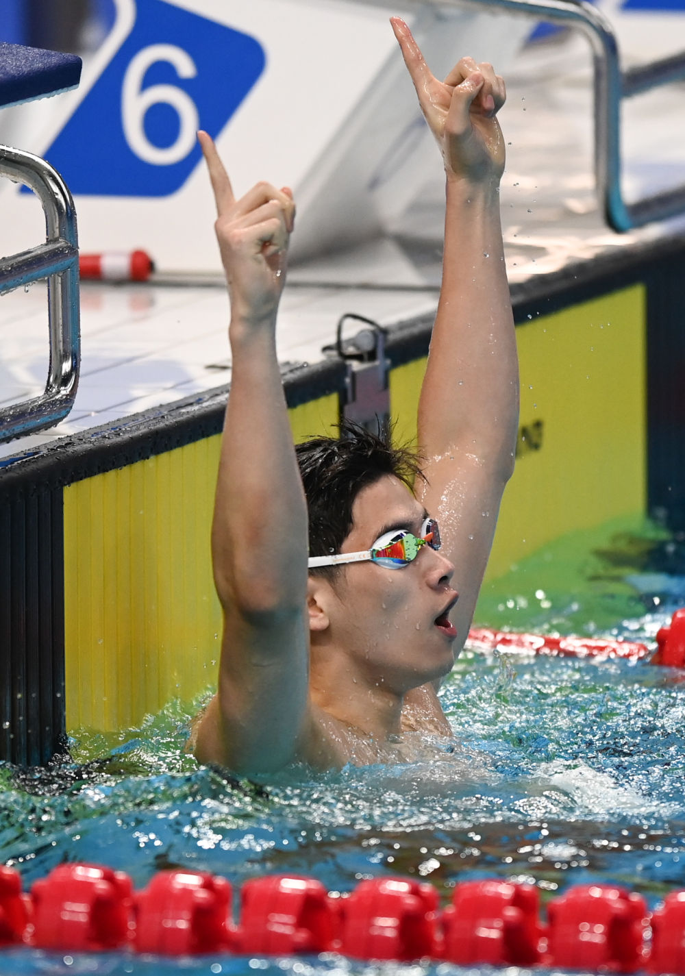 繼首個比賽日在男子100米自由泳決賽中超越亞洲紀(jì)錄后,潘展樂當(dāng)天又以1分44秒65奪得男子200米自由泳金牌,可列今年世界第一好成績,與孫楊保持的亞洲紀(jì)錄1分44秒39相差0秒26。奧運(yùn)會男子200米混合泳冠軍汪順和浙江隊(duì)另一名選手洪金權(quán)分列第二、三位。