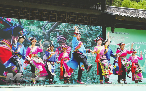 吊腳樓前歌舞美,爾瑪人家齊歡聚。夏日的平武豆叩羌族鄉(xiāng),青山蒼翠,流水潺潺,各地游客來到這里,領(lǐng)略瓦爾俄足的魅力,感受茶鄉(xiāng)的濃郁羌情,品嘗傳統(tǒng)特色的粽子。