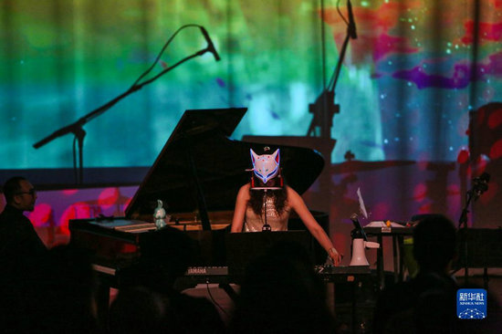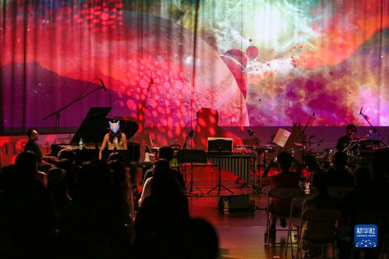 這是7月11日拍攝的音樂會現(xiàn)場。當(dāng)日,“極地游樂場——王斐南流行室內(nèi)樂融合劇場”在上海舉辦。作為2023上海夏季音樂節(jié)一系列演出之一,音樂家們?yōu)橛^眾演繹了一場多維融合的室內(nèi)樂作品音樂會。(新華社記者 辛夢晨 攝)