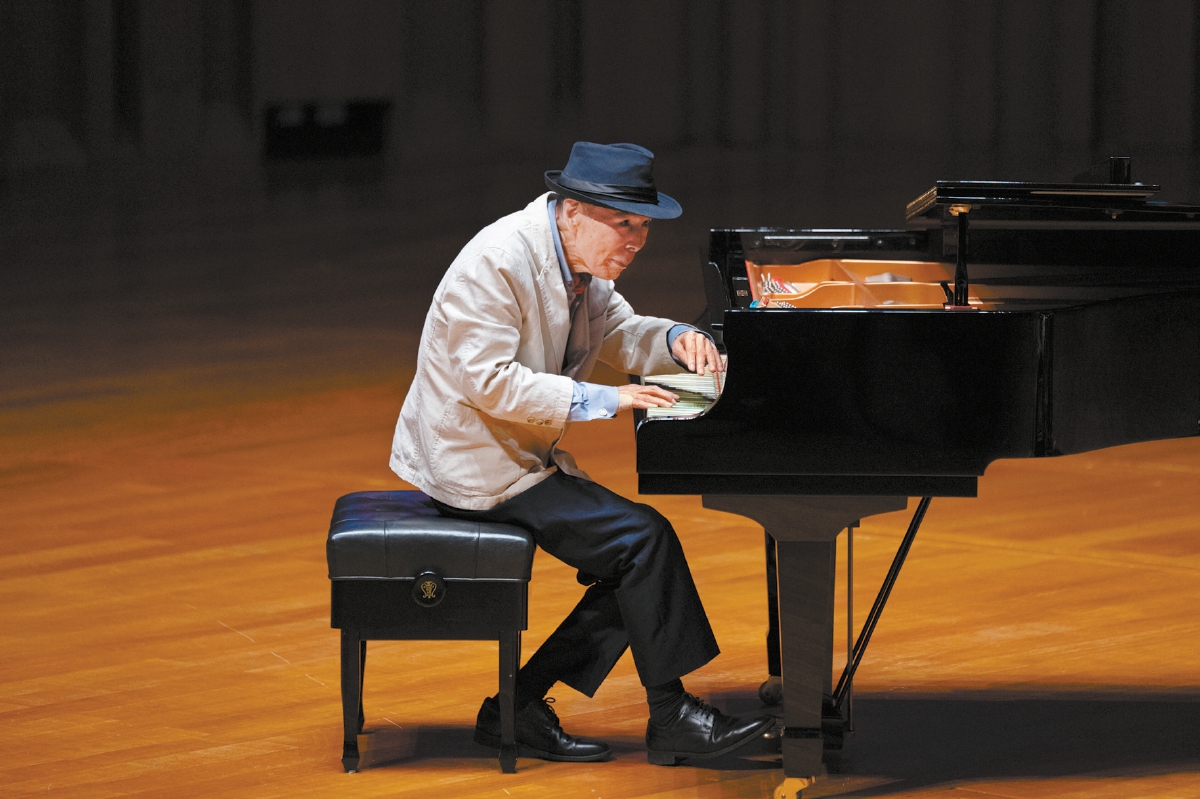 89歲高齡的日本爵士泰斗菅野邦彥走上舞臺,小黑帽,白西裝,腳步不快,脊背輕微有些佝僂,但手里的“小玩具”透露出老爺子的俏皮心思。扶著鋼琴,菅野邦彥向觀眾深深鞠了標志性的一躬,隨后開啟了他輕巧的演奏。