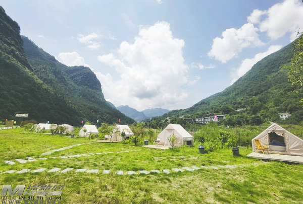 陳家壩的馬家倒溝有著純原生態(tài)的自然景觀,為增加游客旅游體驗,當(dāng)?shù)匦陆艘皝硪叭敉饴稜I基地和民宿,滿足游客對戶外運動的需求。露營基地建起了游泳池、天幕以及燒烤用具,足夠上百人使用,在這里可以進(jìn)行大型燒烤,舉行音樂派對等活動,每天都有不少自駕游、越野愛好者以及驢友來在這里停留,盡情享受看天上的星星、聽潺潺流水的原生態(tài)自然體驗。