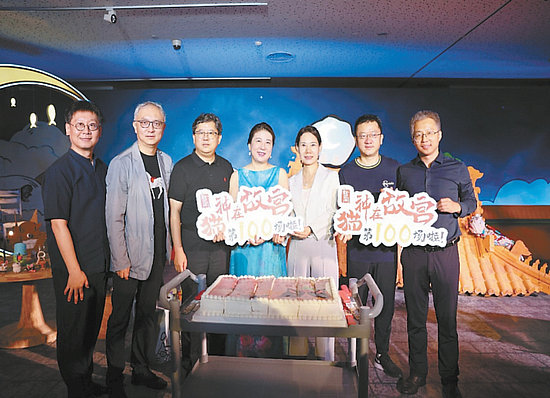 “3、2、1!”伴隨倒計(jì)時(shí),新空間劇場(chǎng)《貓神在故宮》的出品方代表共同切下蛋糕,慶祝該劇昨天在天橋藝術(shù)中心圓滿(mǎn)完成百場(chǎng)演出,取得口碑與票房雙豐收。