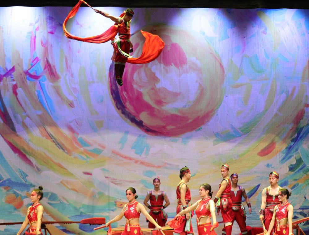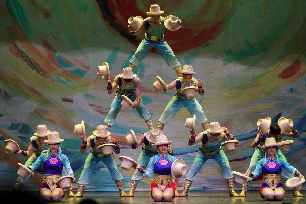 9月3日,湖南省雜技藝術(shù)劇院的演員在西班牙馬德里EDP格蘭維亞劇院演出。新華社記者 孟鼎博 攝