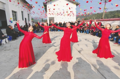 在鹽亭縣岐伯鎮(zhèn)燕來(lái)村,村民們歡聚一堂,觀看自編自導(dǎo)自演的小品、情景劇、舞蹈等反映新時(shí)代新生活的精彩節(jié)目。12時(shí),熱鬧的壩壩宴準(zhǔn)時(shí)開(kāi)席,燒白、紅燒肉、羊肉湯等一道道充滿年味的菜品端上桌,席間,鄉(xiāng)鄰們共敘鄉(xiāng)情,共話發(fā)展,其樂(lè)融融。