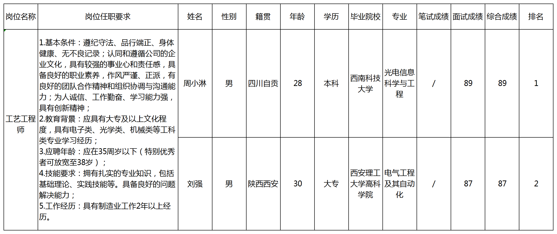 根據(jù)四川九華光子通信技術(shù)有限公司發(fā)布的招聘公告及招聘相關(guān)規(guī)定,經(jīng)面試程序,現(xiàn)將面試成績(jī)予以公示。