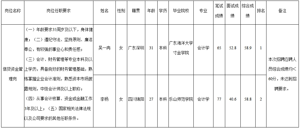 根據(jù)四川嘉來(lái)建筑工程有限公司發(fā)布的招聘公告及招聘相關(guān)規(guī)定,經(jīng)筆試、面試等程序,現(xiàn)將筆試、面試成績(jī)予以公示。