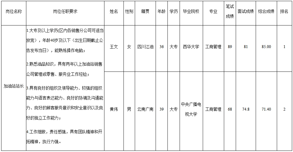 根據(jù)四川綿江能源有限公司發(fā)布的招聘公告及招聘相關(guān)規(guī)定,經(jīng)筆試、面試等程序,現(xiàn)將筆試、面試成績予以公示:
