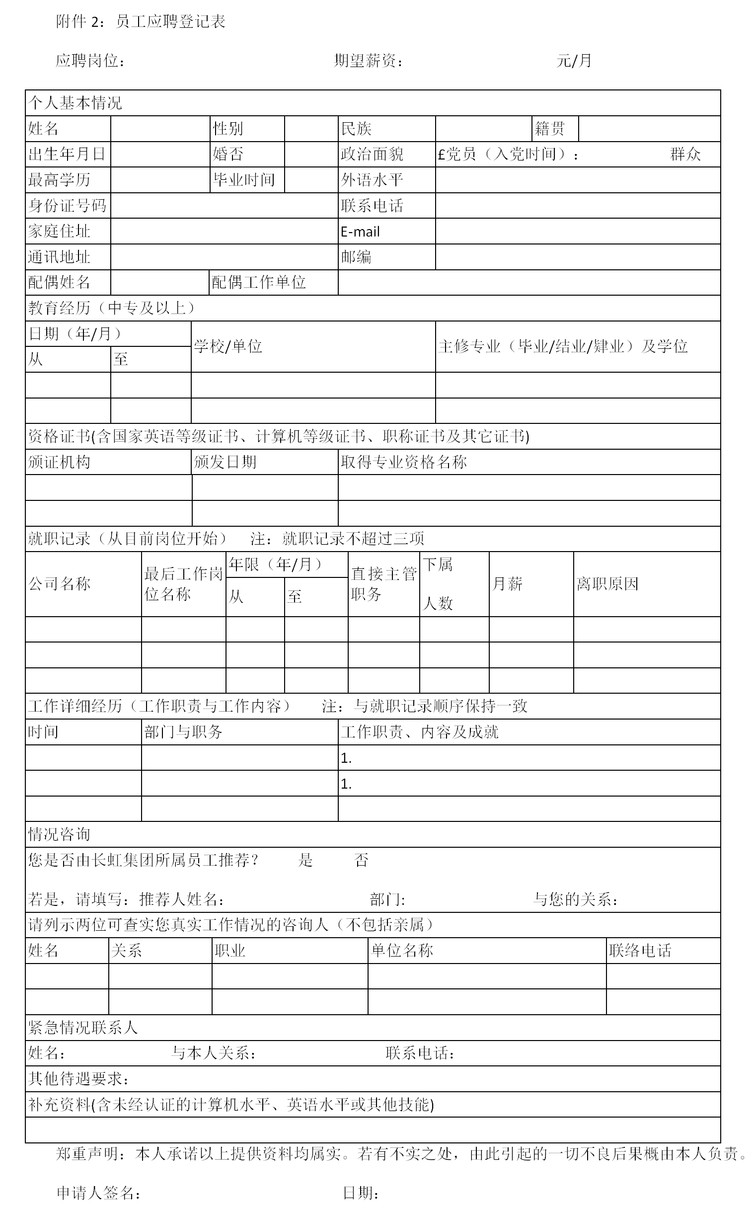 ?。ㄎ澹┨貏e聲明:應(yīng)聘者應(yīng)對(duì)提交材料的真實(shí)性負(fù)責(zé),如有弄虛作假,立即取消聘用資格并追究其法律責(zé)任。