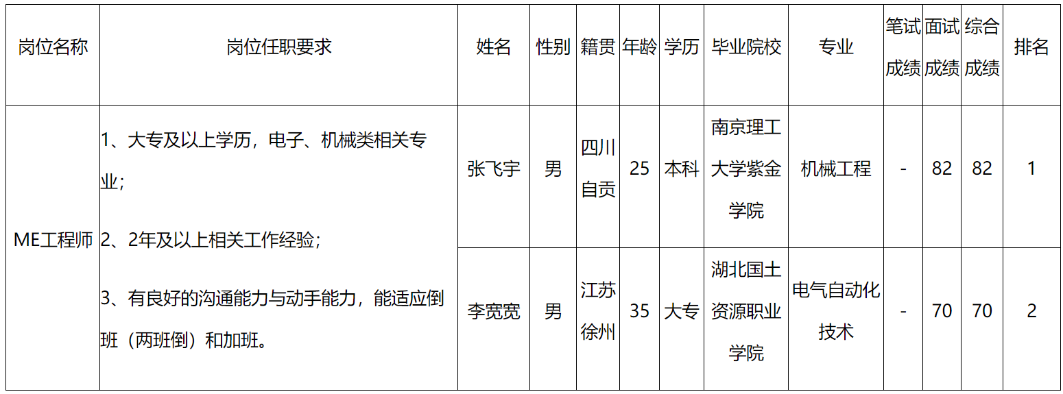根據(jù)四川九州電子科技股份有限公司發(fā)布的招聘公告及招聘相關(guān)規(guī)定,經(jīng)筆試、面試等程序,現(xiàn)將筆試(面試)成績予以公示。