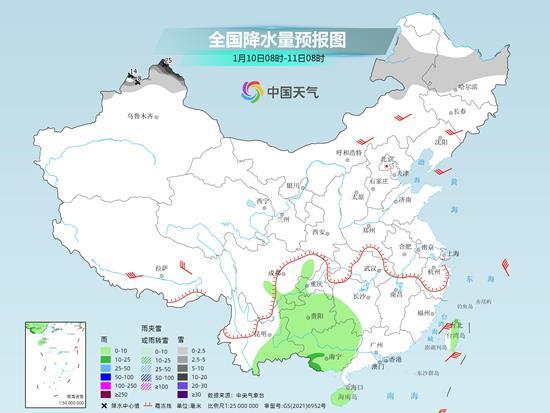 明天,內(nèi)蒙古東北部、黑龍江大部、吉林東部、新疆北部、川西高原南部等地部分地區(qū)有小到中雪或雨夾雪,其中,新疆北部塔城、阿勒泰地區(qū)和伊犁河谷等地局地有大到暴雪(10~18毫米)。貴州中南部、云南東部、廣西、湖南西南部、海南島中部等地部分地區(qū)有小雨。