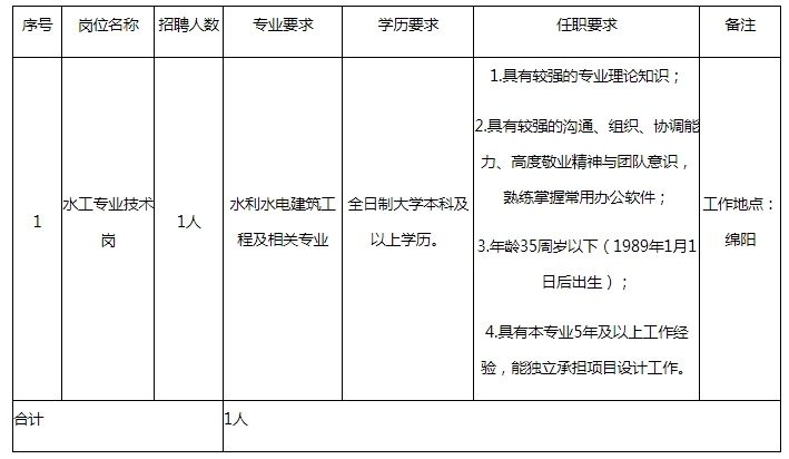 綿陽市水利規(guī)劃設計研究院有限公司公開招聘工作人員報名表