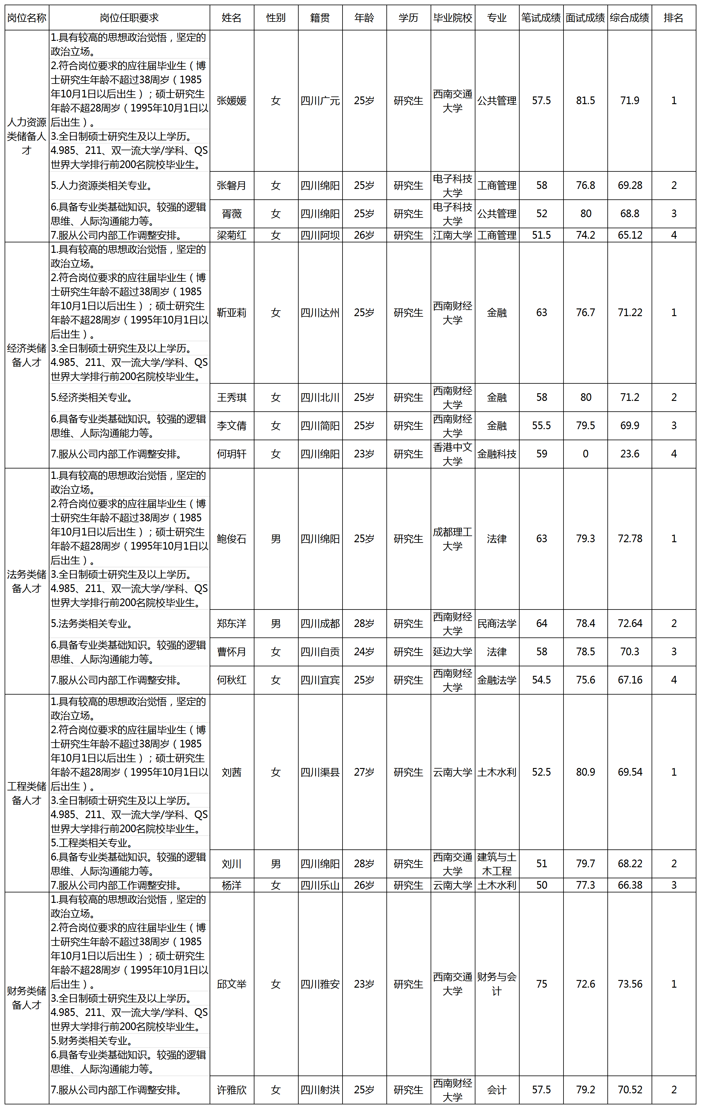 根據(jù)集團(tuán)發(fā)布的秋季“獵才行動(dòng)”招聘公告及招聘相關(guān)規(guī)定,經(jīng)筆試、面試等程序,現(xiàn)將面試人員綜合成績予以公示。