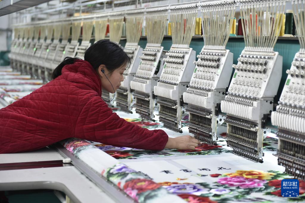 1月9日,汝州市汝繡產(chǎn)業(yè)園一家機(jī)繡企業(yè)的工人在生產(chǎn)車間內(nèi)作業(yè)。