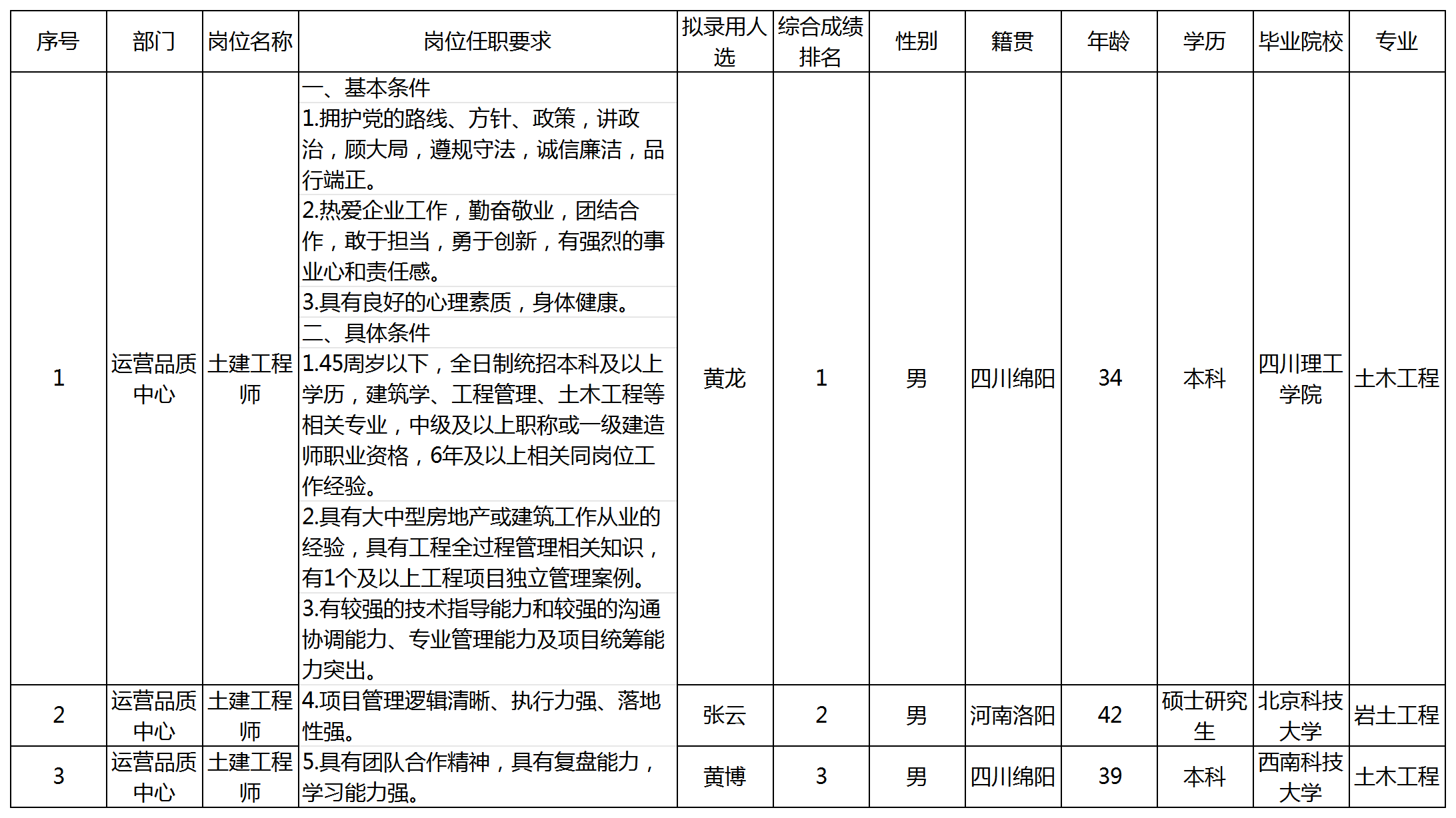 根據(jù)九洲千城置業(yè)有限責(zé)任公司發(fā)布的招聘公告及招聘相關(guān)規(guī)定,經(jīng)筆試、面試、考察、體檢等程序,擬錄用黃龍等同志到九洲千城置業(yè)有限責(zé)任公司工作,現(xiàn)予以公示,具體情況如下: