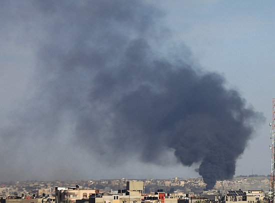 1月13日,加沙地帶南部城市汗尤尼斯遭以色列空襲后升起濃煙。新華社發(fā)(亞西爾·庫迪攝)