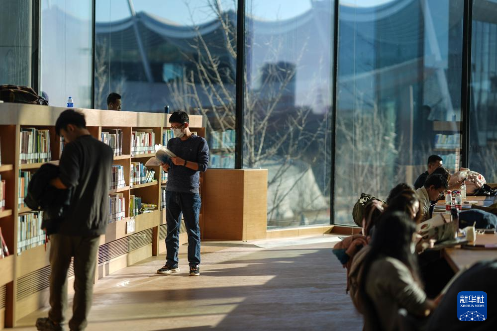 1月14日,市民在北京城市圖書館里閱讀。