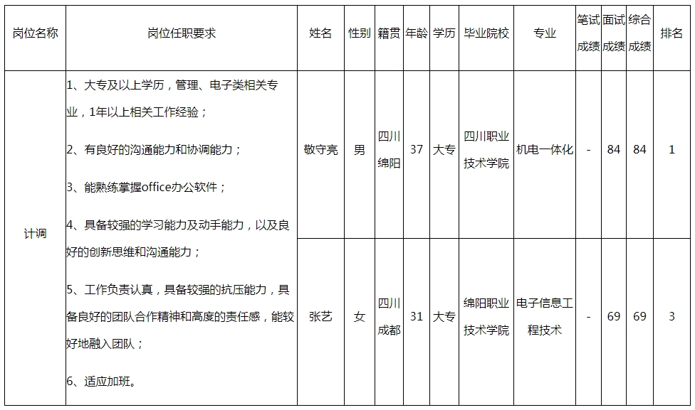 根據(jù)四川九州電子科技股份有限公司發(fā)布的招聘公告及招聘相關(guān)規(guī)定,經(jīng)筆試、面試等程序,現(xiàn)將筆試(面試)成績予以公示。