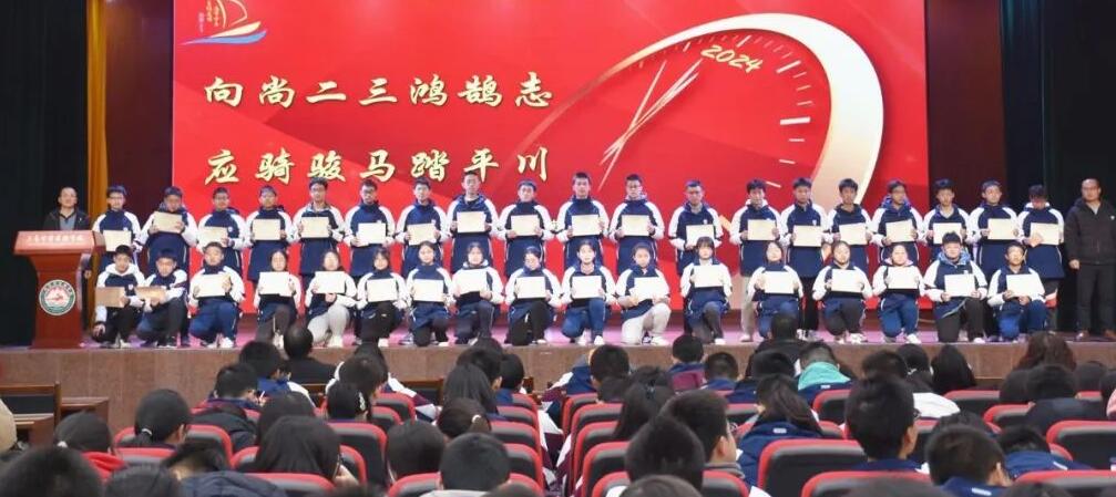 為了表彰優(yōu)秀、樹(shù)立榜樣、鼓舞斗志,營(yíng)造全年級(jí)的期末備考氛圍,激發(fā)全體高一學(xué)生的學(xué)習(xí)主動(dòng)性和積極性,全力以赴沖刺期末考試。2024年1月9日晚六點(diǎn),三臺(tái)中學(xué)實(shí)驗(yàn)學(xué)校在致知樓三樓多功能廳召開(kāi)了以“向尚二三鴻鵠志,應(yīng)騎駿馬踏平川”為主題的向尚2023級(jí)期末考試沖刺大會(huì)。該校清北工作分管領(lǐng)導(dǎo)何曉敏、向尚2023級(jí)年級(jí)主任劉金山、后勤服務(wù)中心副主任陳云、2023級(jí)副主任何良發(fā)、2023級(jí)副主任陳東華出席本次大會(huì)。