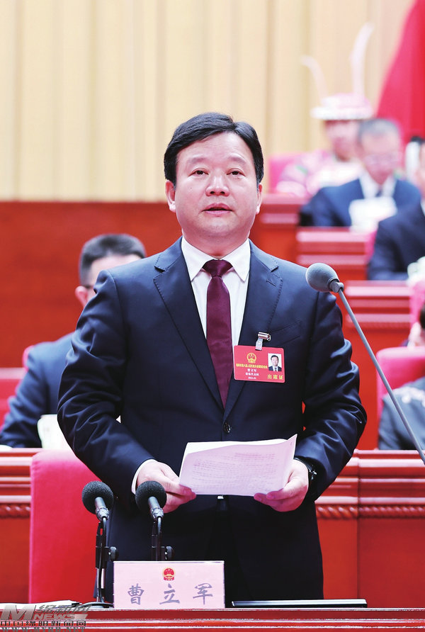 大會主席團(tuán)常務(wù)主席、全體會議執(zhí)行主席曹立軍主持會議(記者賴杰攝)