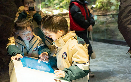 “媽媽?zhuān)憧催@棵樹(shù)上面也掛了牌子。”一大早,開(kāi)化縣實(shí)驗(yàn)幼兒園的小朋友們來(lái)到古田山探索自然的秘密。小朋友與家長(zhǎng)沿路而上,檵木、浙江大青、赤楊葉等植物被一一記錄在研學(xué)手冊(cè)上,有的小朋友還手持放大鏡觀察植物的脈絡(luò)紋理,將自己喜歡的樹(shù)葉記錄下來(lái),剪出形狀。“今天很開(kāi)心,我看到了喜歡的楊梅樹(shù),還撿到了鵝卵石。”一個(gè)小朋友興奮地歡呼到。結(jié)束室外活動(dòng),孩子們與家長(zhǎng)來(lái)到了錢(qián)江源國(guó)家公園科普館,近距離觀察野生動(dòng)植物標(biāo)本,學(xué)習(xí)錢(qián)江源國(guó)家公園動(dòng)植物相關(guān)知識(shí)。