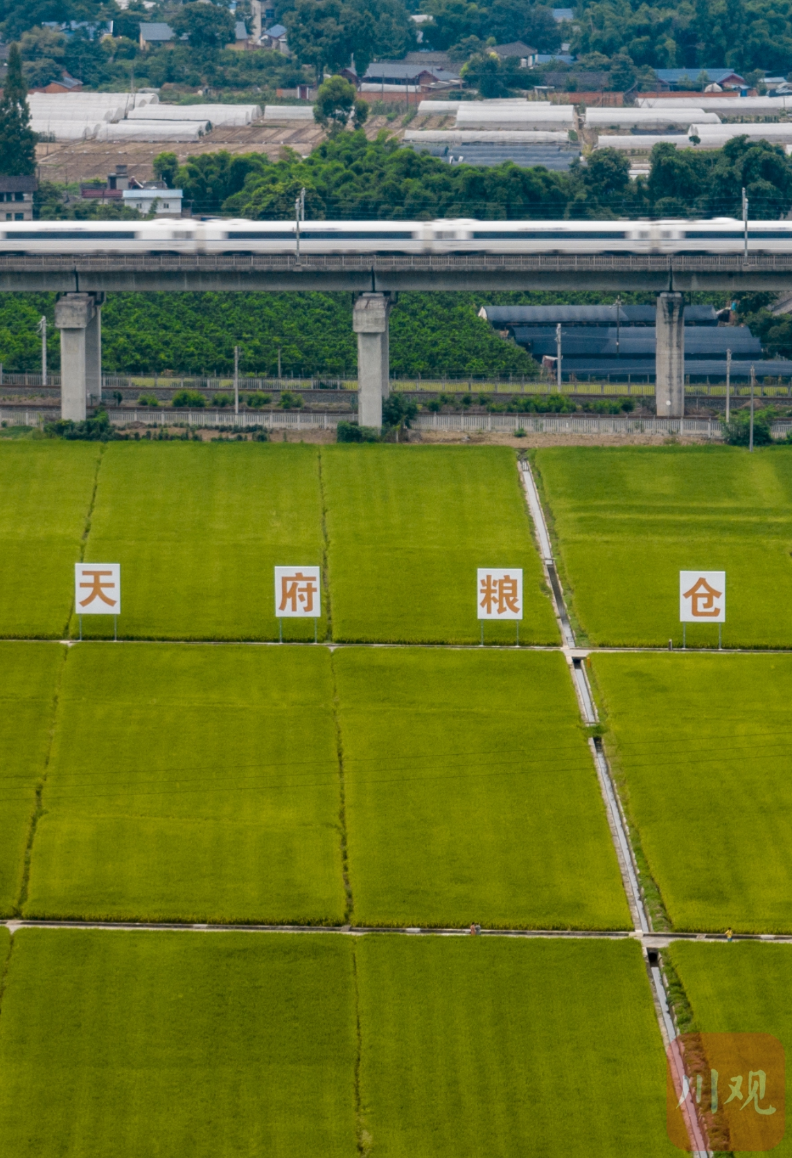 高鐵從眉山市東坡區(qū)太和鎮(zhèn)永豐村的連片稻田上駛過。何海洋 攝