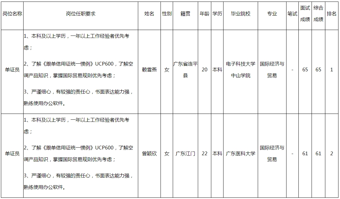根據(jù)中山長(zhǎng)虹電器有限公司發(fā)布的招聘公告及招聘相關(guān)規(guī)定,經(jīng)面試程序,現(xiàn)將面試成績(jī)予以公示。