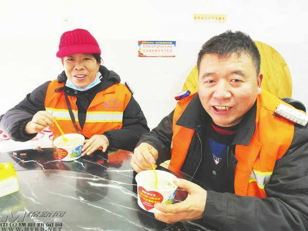 “喝著暖暖的臘八粥,真的是甜在嘴里,暖在心里。”環(huán)衛(wèi)工人李阿姨說。