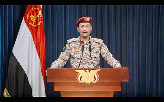 這張1月18日的視頻截圖顯示,也門胡塞武裝發(fā)言人葉海亞·薩雷亞發(fā)表聲明。新華社發(fā)