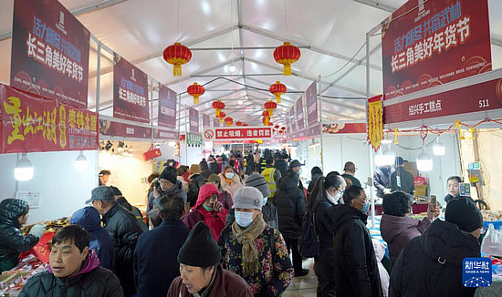 1月22日,在杭州西湖文化廣場,市民在“長三角美好年貨節(jié)”上選購商品。