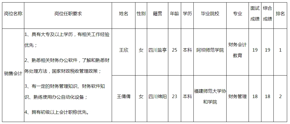 根據(jù)四川格潤中天環(huán)??萍加邢薰景l(fā)布的招聘公告及招聘相關(guān)規(guī)定,經(jīng)面試等程序,現(xiàn)將面試成績予以公示。
