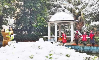 1月24日,城區(qū)雪花飛揚,一派銀裝素裹。不少市民在小區(qū)拍照打卡,記錄美好瞬間。 (記者 任明勇 攝)