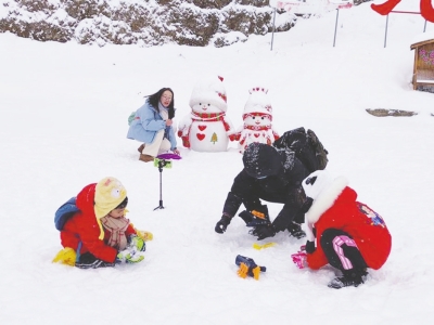 在北川,小朋友們在家長的陪伴下打雪仗、堆雪人?! ?記者 李春梅 唐云峰 攝)