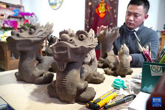 春節(jié)臨近,在山東濰坊高密市姜莊鎮(zhèn)聶家莊村,當(dāng)?shù)卮迕裰谱鼾堅(jiān)煨湍嗨芄?yīng)各地市場(chǎng)。聶家莊村有制作泥塑的悠久傳統(tǒng),2008年聶家莊泥塑被列為國家級(jí)非物質(zhì)文化遺產(chǎn)。